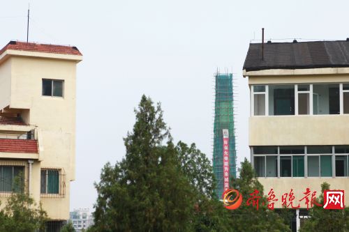 7月25日上午,记者在开元开云电子球赛中国有限公司房看到,在绿色防护网内,烟囱拆除工作正有序进行,施工人员在60米的高脚手架上紧张忙碌着。